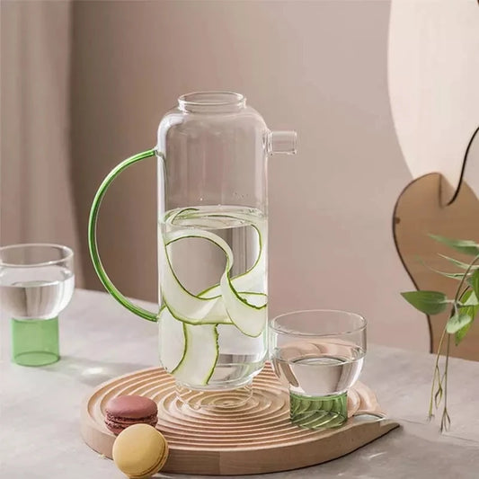 Retro Nordic Style Green Tinted Glass Pitcher and Glasses